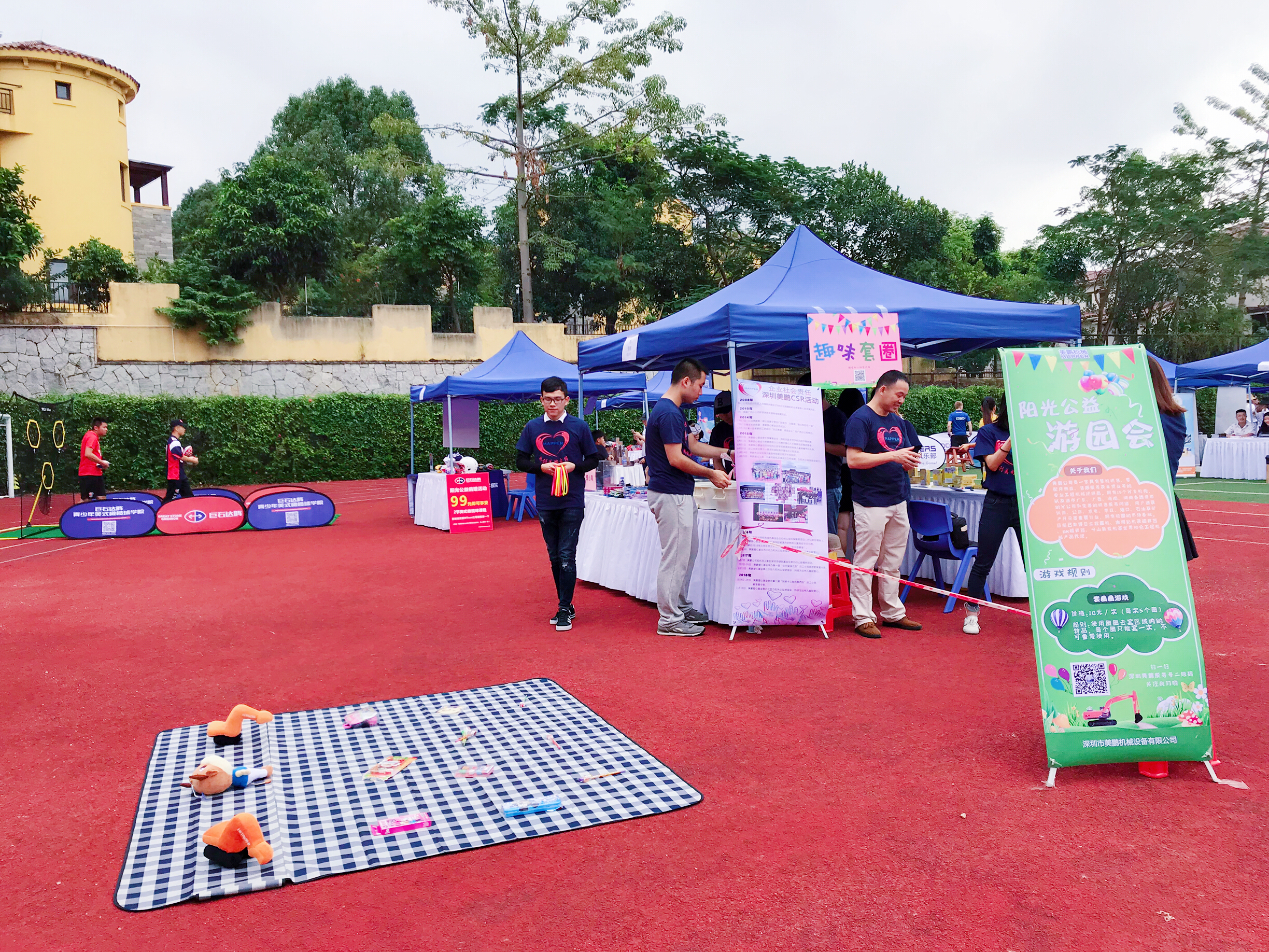 美鵬愛(ài)心基金的志工們一大早就前往會(huì)場(chǎng)布置展位。今年我們不僅僅有豐富的義賣產(chǎn)品,還有趣味性十足的套圈圈游戲。