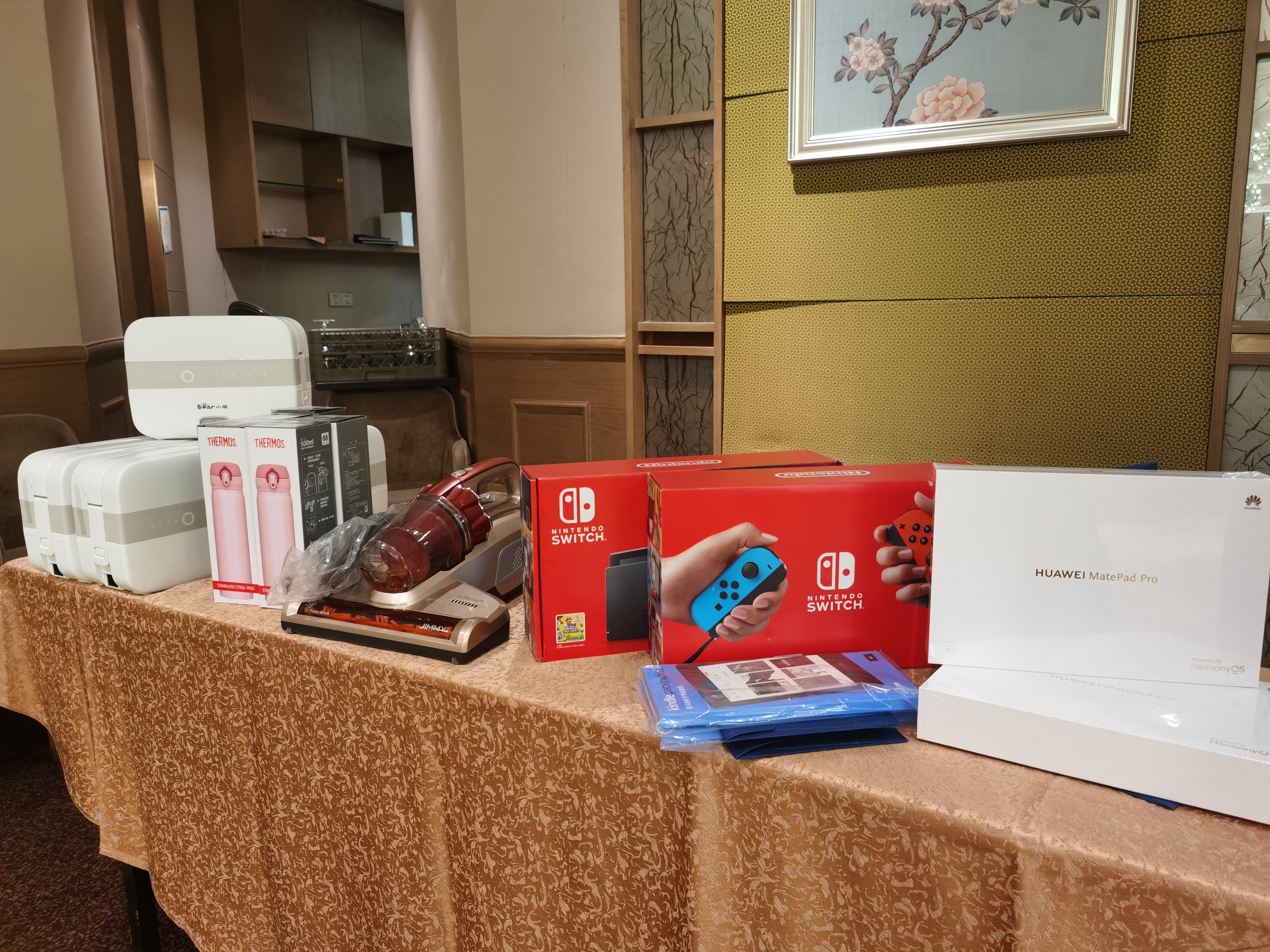 下午18點左右,全體參會人員移動到餐廳一起用晚餐,公司為晚宴準(zhǔn)備了抽獎活動,中獎率竟高達百分之一百!現(xiàn)在讓我們一起來看看都有哪些幸運同事抱得大獎而歸吧~